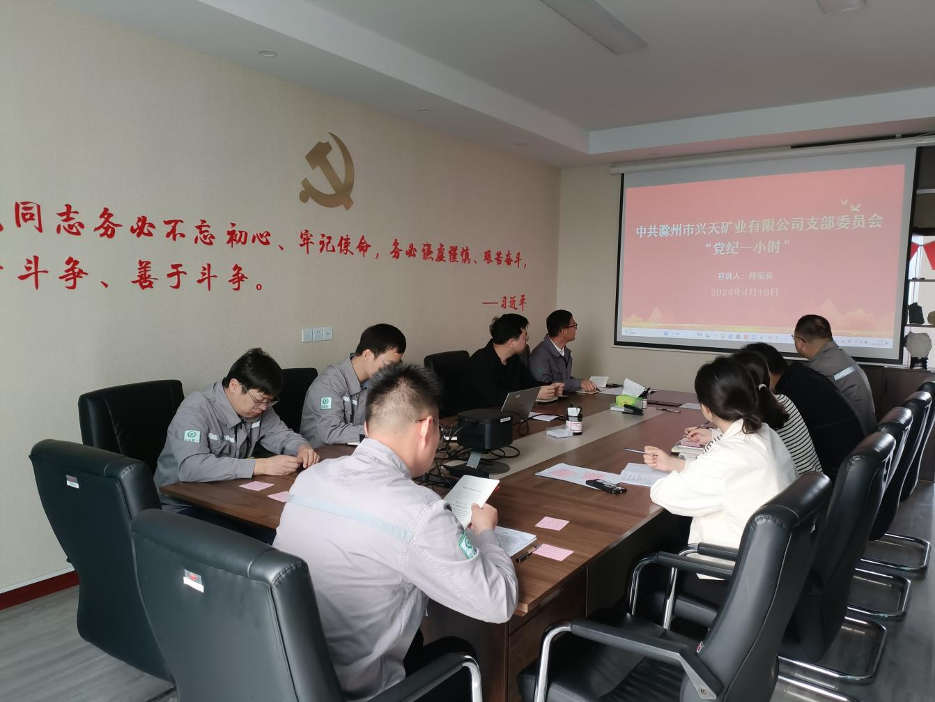 為扎實開展黨紀學(xué)習教育工作,4月19日,興天礦業(yè)黨支部組織召開“黨紀一小時”活動,支部紀檢委員傅家亮同志為參會人員深入解讀新修訂的《中國共產(chǎn)黨紀律處分條例》。