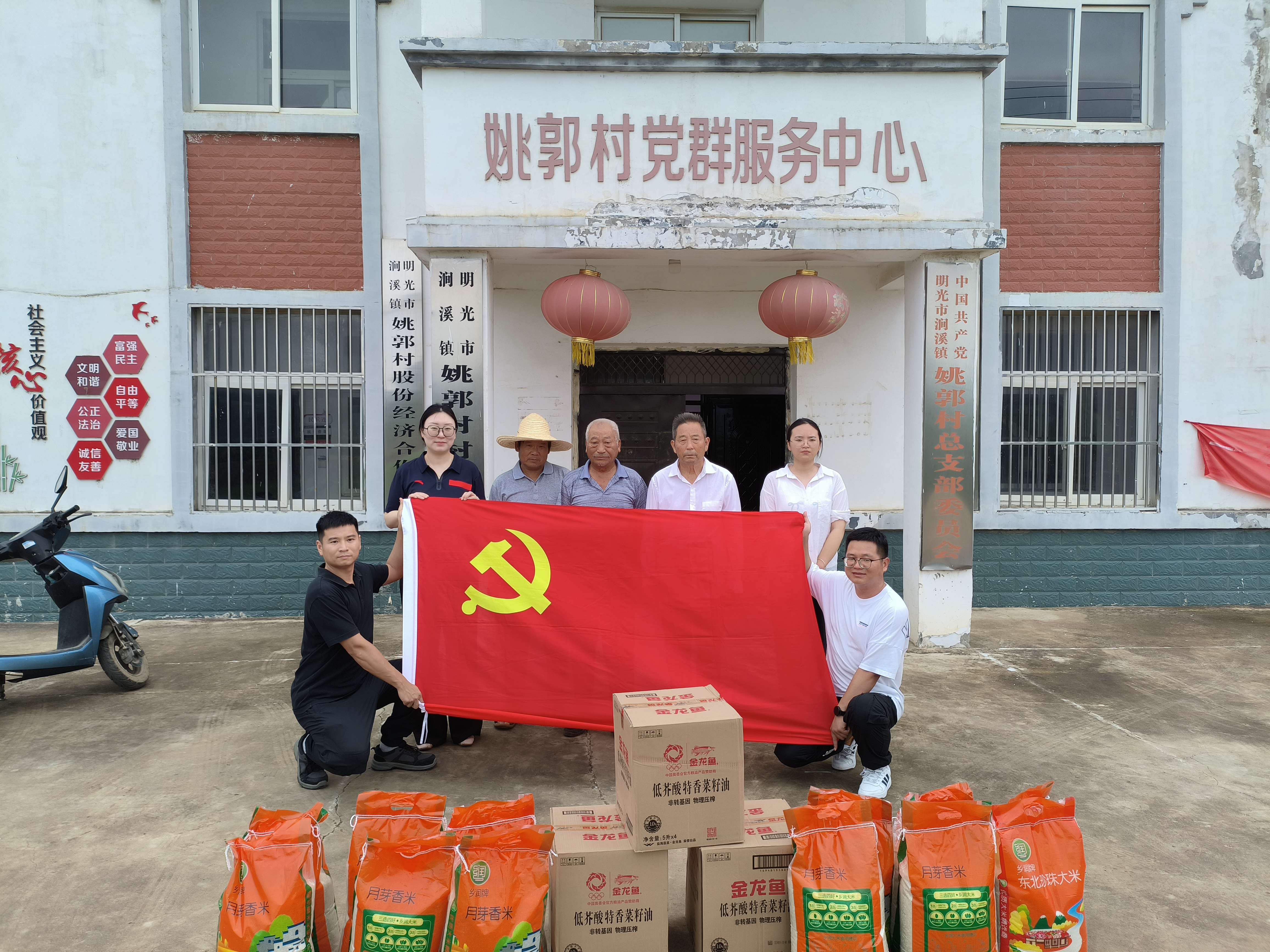 黨員們?yōu)榇逯欣щy黨員和群眾送去米、油等生活物資,鼓勵(lì)他們堅(jiān)定信心,保持積極樂觀的生活態(tài)度。