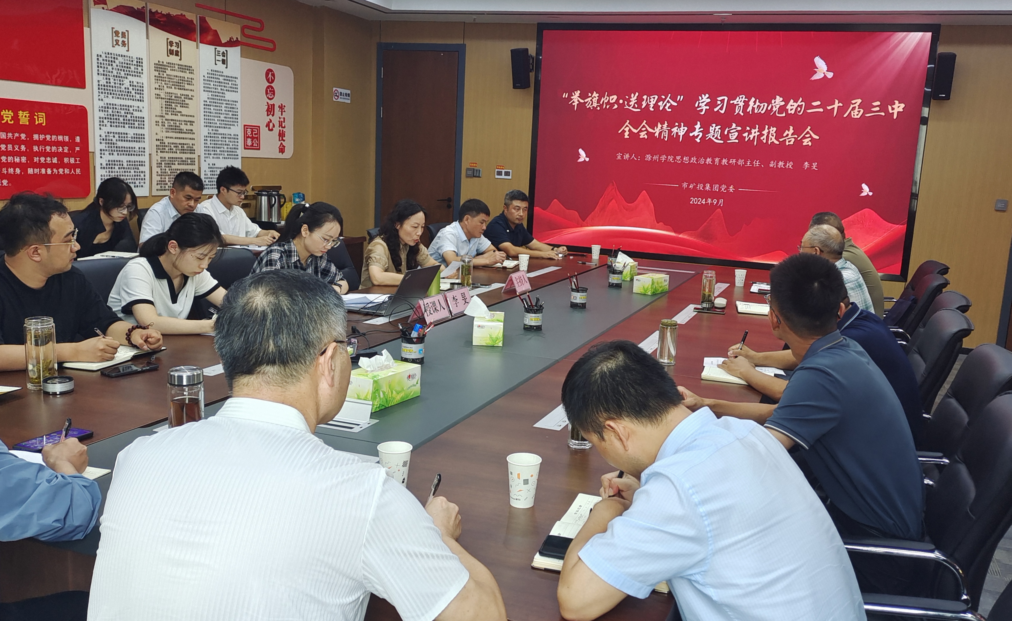 9月14日,“舉旗幟·送理論”學(xué)習(xí)貫徹黨的二十屆三中全會精神專題宣講活動在市礦投集團(tuán)舉行。滁州學(xué)院思想政治教育教研部主任、副教授李旻作專題宣講報告。市礦投集團(tuán)本部全體干部職工、各子公司負(fù)責(zé)人參加會議。