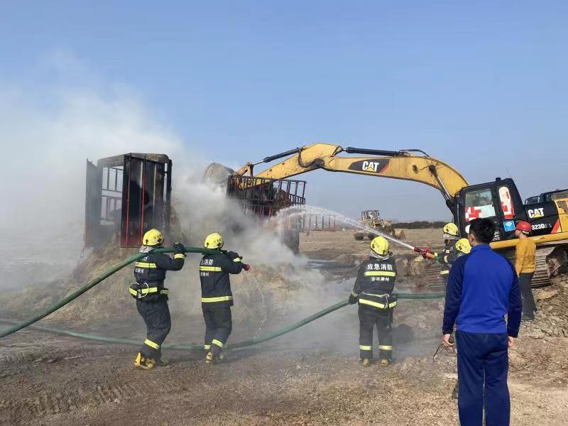 11月16日中午12時(shí)許,澗溪鎮(zhèn)姚郭村澗官路路口一輛滿載稻草的貨車不慎刮到路邊高壓電線引發(fā)稻草著火,情急之下,貨車司機(jī)將車輛開往巢東礦區(qū)磅房尋求救援。興明礦業(yè)總經(jīng)理王秀超得知火情后,立即啟動(dòng)火災(zāi)應(yīng)急預(yù)案,安排磅房工作人員撥打119火警電話,并在短短的3分鐘內(nèi)抽調(diào)了巢東礦區(qū)10余名工作人員、2臺(tái)灑水車和1臺(tái)挖掘機(jī),第一時(shí)間趕往現(xiàn)場(chǎng)救援。興明礦業(yè)職工冒著滾滾濃煙,沖進(jìn)火場(chǎng)現(xiàn)場(chǎng),克服煙熏火燎等重重困難,奮力滅火,在消防官兵趕到前,有效阻止了火勢(shì)蔓延。隨后在與消防救援專業(yè)人員協(xié)同下,經(jīng)過1個(gè)多小時(shí)的不懈努力,終于把大火撲滅。
